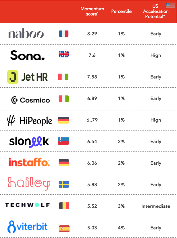 The ranking of these startups is based on the estimated momentum of the company but the algorithm does not assess the quality or reliability of the products/solutions developed by these companies!